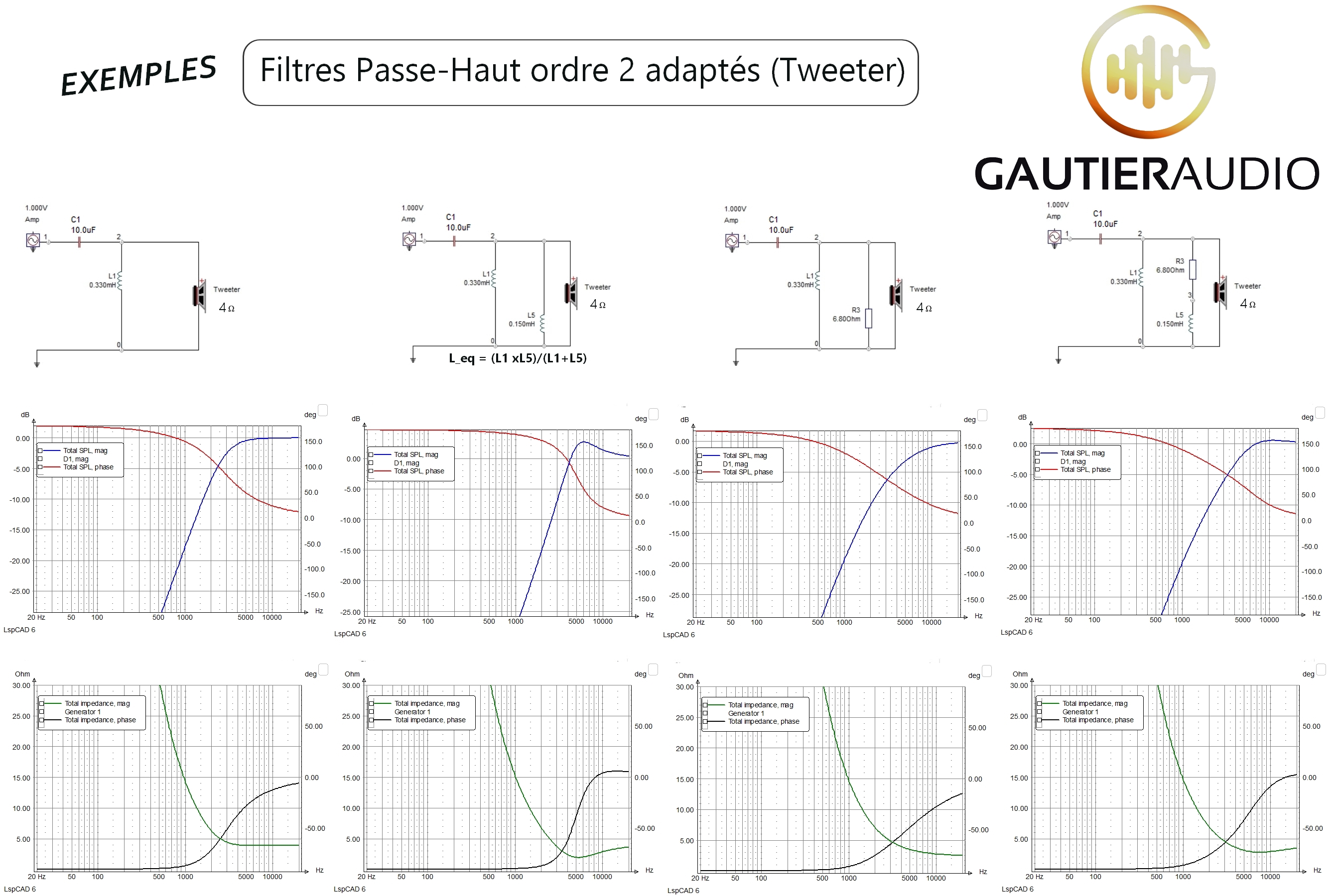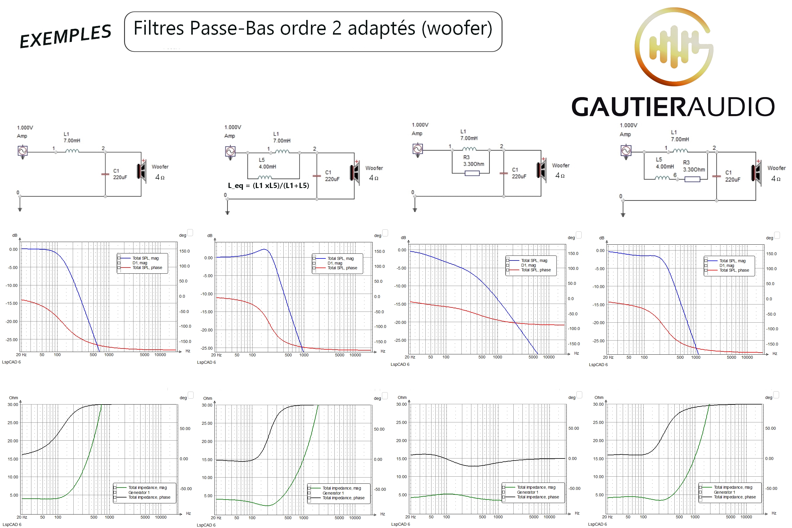 En filtrage passif, ne vous contentez pas de filtre avec des pentes classiques. Faites du filtrage « type large bande » Voir quelques exemples simples dans « pseudo filtres » en annexe et utilisez aussi des filtres « bouchon » en plus. En filtrage actif, vous différencierez les filtres des crossover et le filtrage de la réponse en fréquence. Sachant que les 2 peuvent être liés et simplifiés.