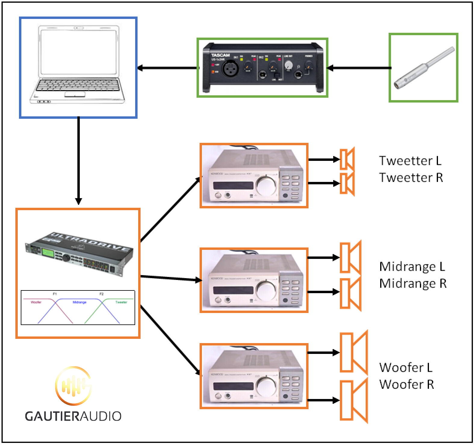 Le recul des HP devra être vérifié, voire revu afin de parfaire l’ensemble des calages temporels car ajouter un filtrage ajoutera des déphasages (si en FIR pour un DSP).