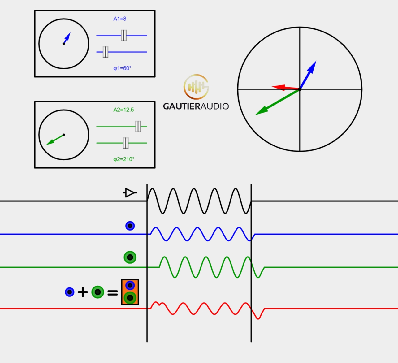 1 cm de décalage dans les centres acoustiques donnera un déphasage de 360 x 0,01m / 1,13m = 3,19°