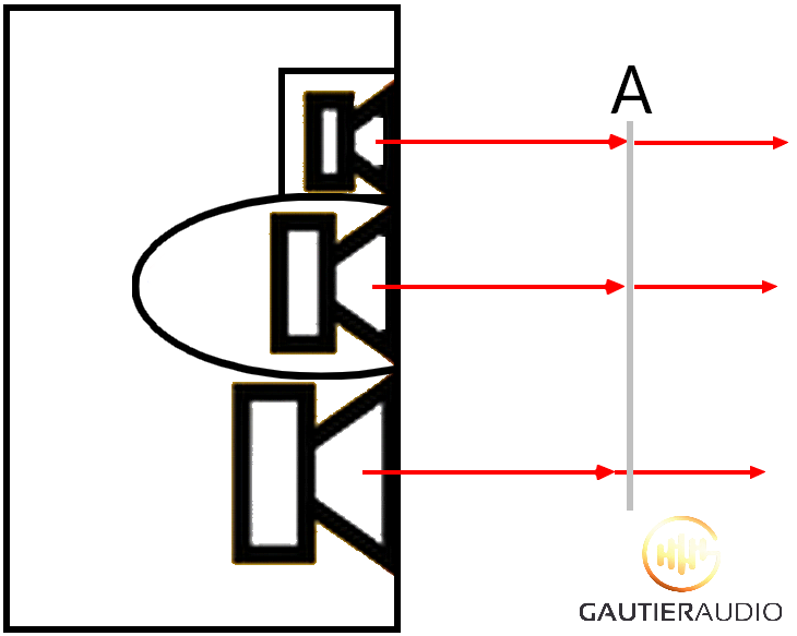 Un woofer peut se trouver dans le plan du médium car les longueurs d’onde sont longues à ces fréquences. La profondeur de la membrane et donc le centre émissif moyen pourront être décalés de plusieurs cm sans problème.