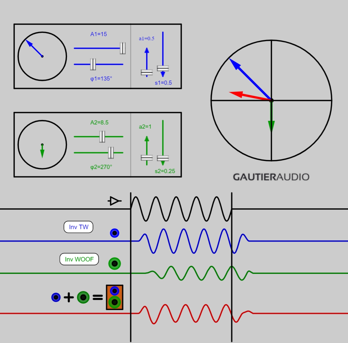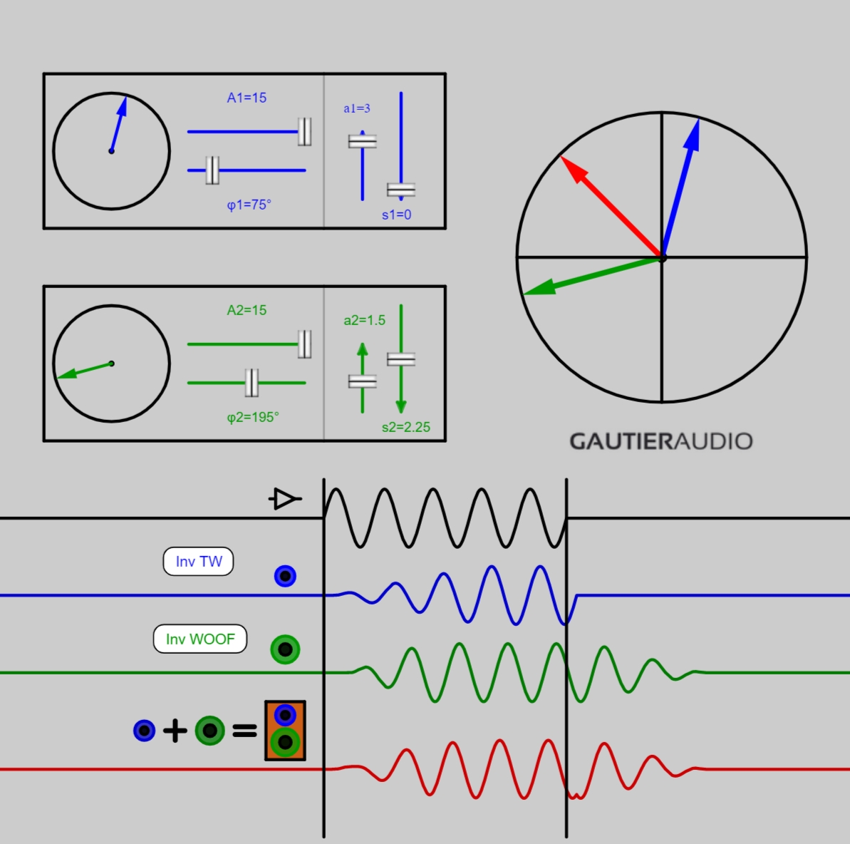 On peut même se permettre d’avancer le médium de plusieurs cm par rapport au woofer et rester dans des déphasages tolérables inférieurs à 5°.