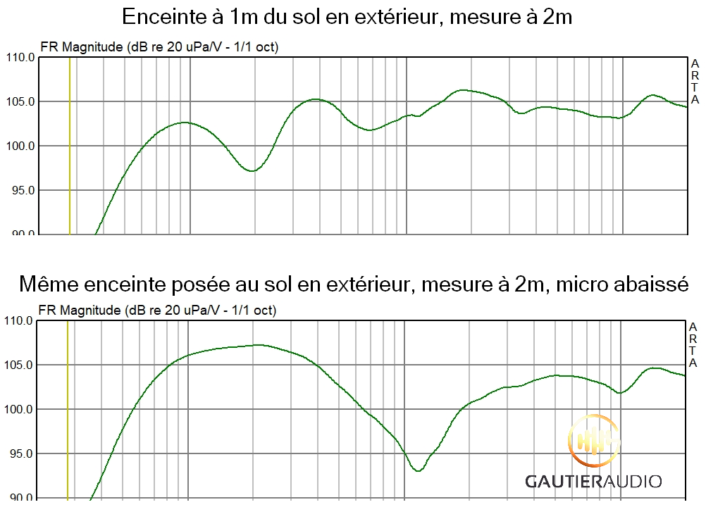 Pensez à mesurer votre enceinte en extérieur, isolée puis à différentes distances d’un mur pour voir l’effet que cela procure sur le grave.