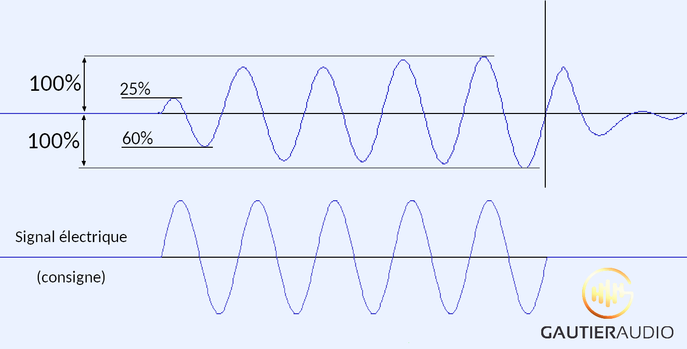 Inconvénient : vous ne pouvez pas visualiser précisément sur un même graphe l’amortissement dans les graves et dans les aigus car une période à 20Hz fait 0,05s tandis qu’une période à 20kHz fait 0,00005s