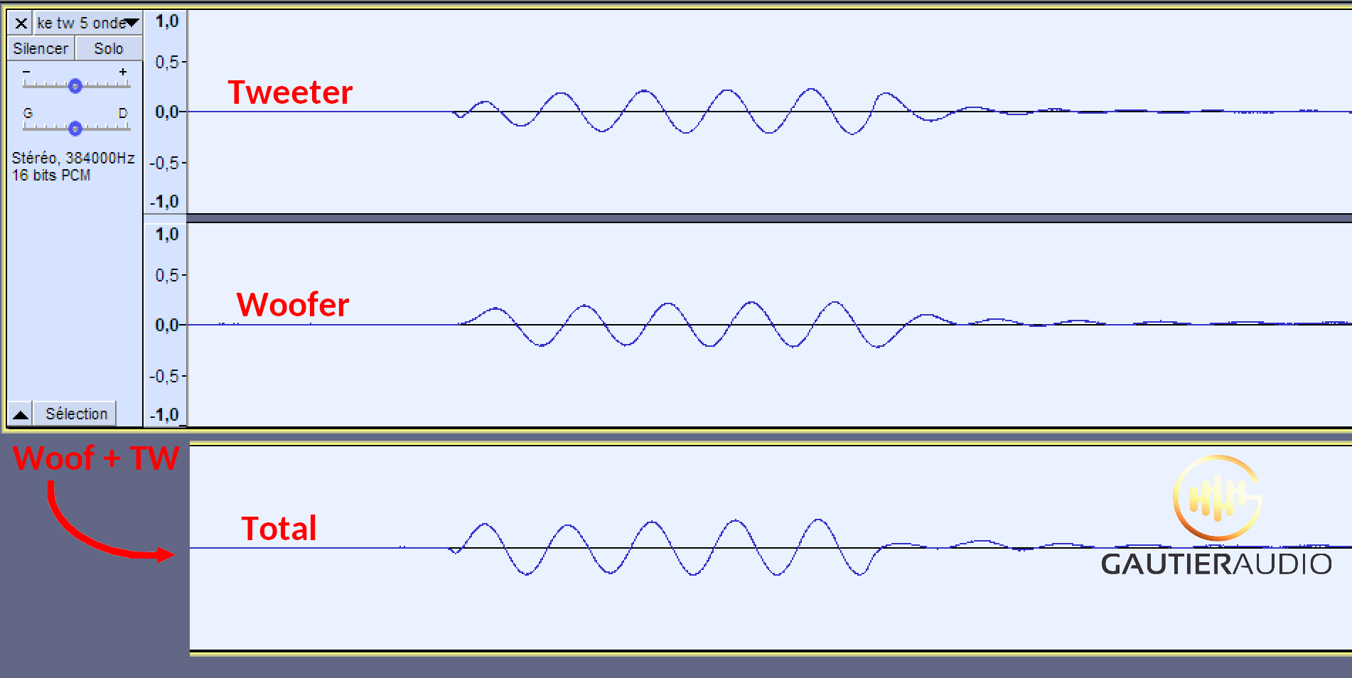 Et inversement, une enceinte qui passe bien des aigus, mais qui ne sont pas totalement en phase ou possèdent une distorsion ou irrégularité de niveau au dessus de 15khz peut avoir une réponse impulsionnelle avec des oscillations visibles alors que l’enceinte est très correcte à l’écoute.